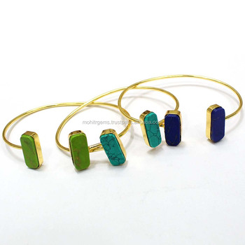 Brazalete de moda de 2 piedras hecho a mano Vintage LapisTurquise logotipo personalizado y paquete hermoso accesorio llamativo